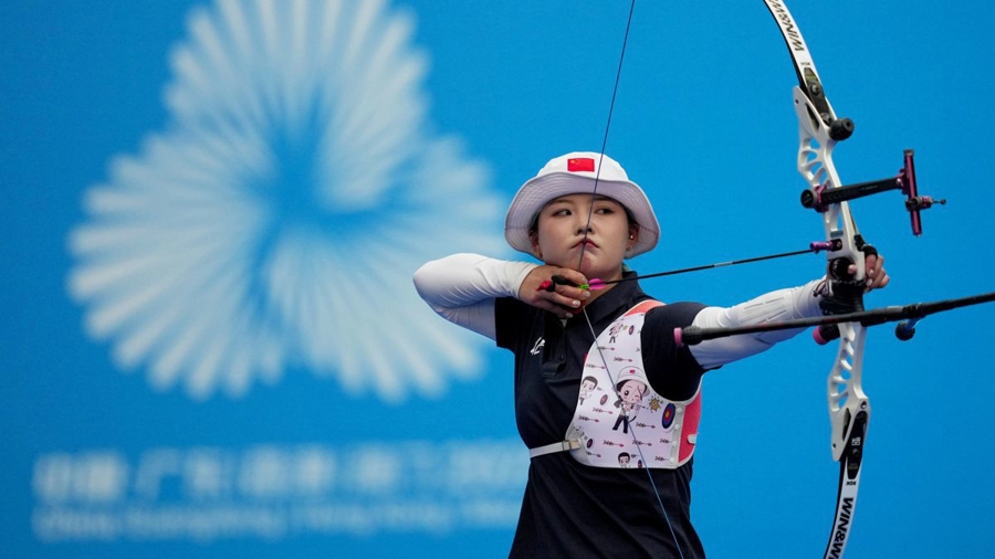 新华社照片,深圳(广东),2025年11月16日\n 11月16日,北京队选手李佳蔓在比赛中。\n 当日,第十五届全国运动会射箭女子反曲弓个人铜牌决赛在广东深圳举行。北京队选手李佳蔓6比2战胜上海队选手朱静怡,获得铜牌。\n 新华社记者 郝源 摄